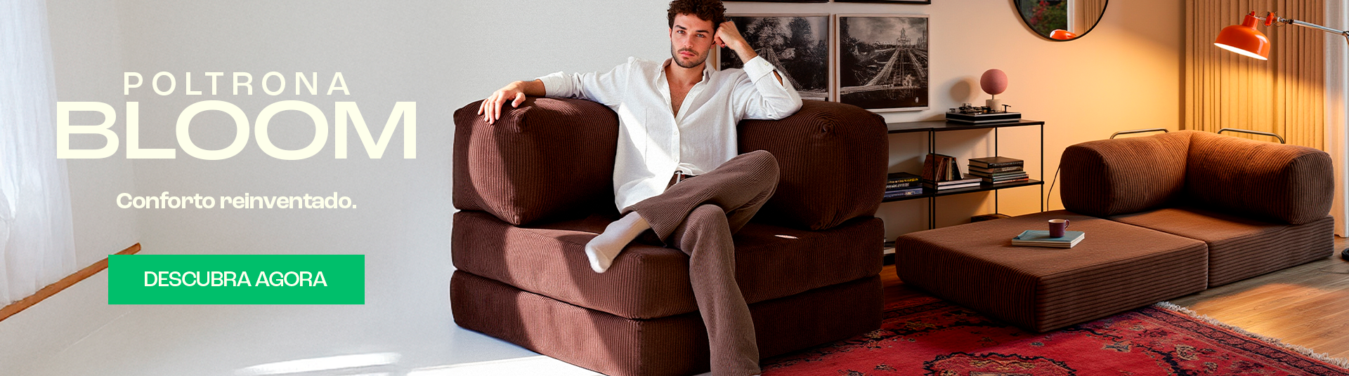O Sofá-Cama Bloom chega em uma caixa única e compacta, oferecendo praticidade e facilidade na entrega.