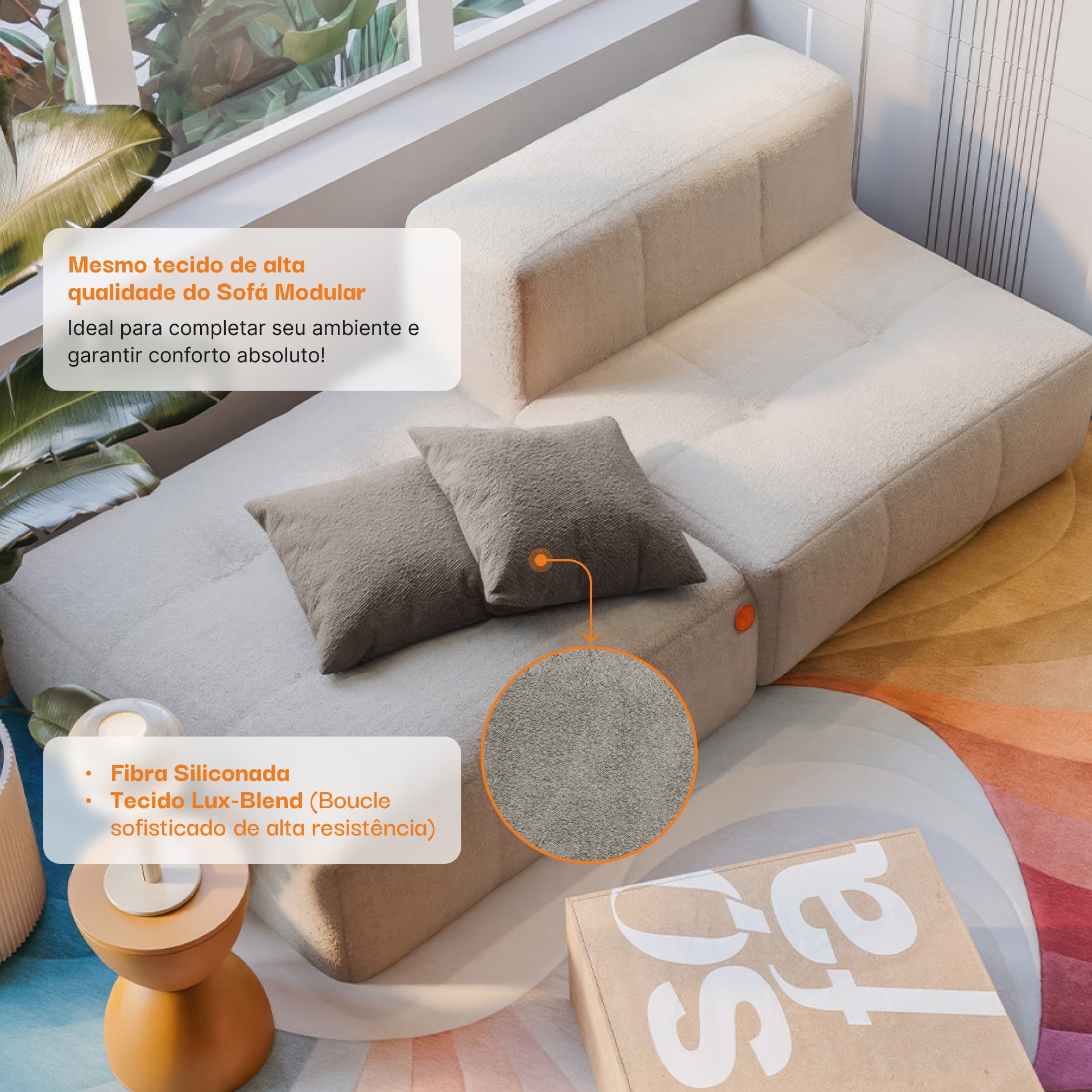 - Tecido LuxBlend: um boucle sofisticado com alta resistência, tornando-o pet friendly. Além disso, é de fácil limpeza, bastando um simples paninho úmido, e possui alta durabilidade.