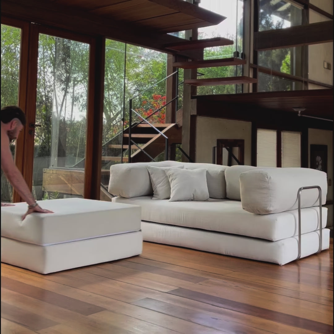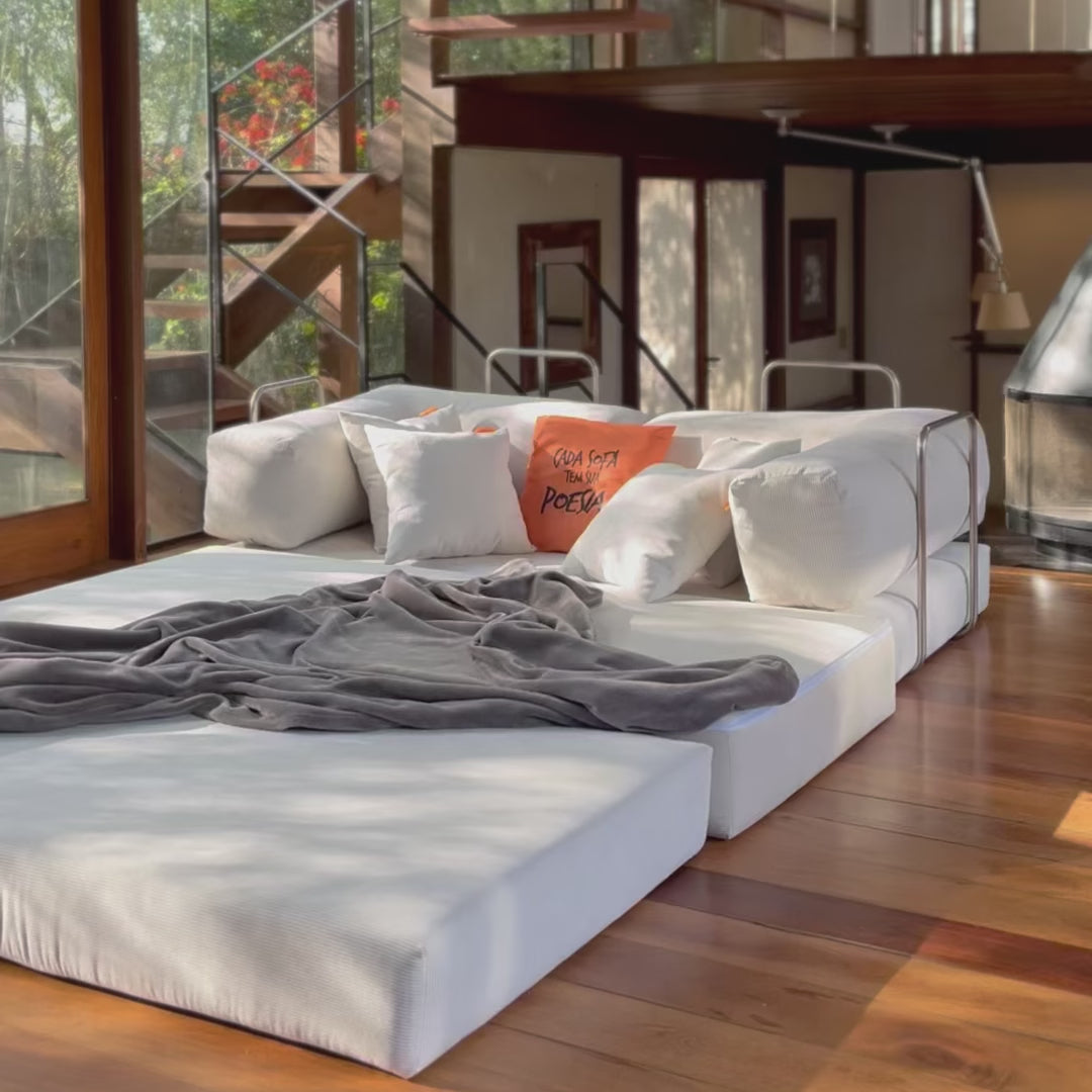 A Tecnologia Modular EaseFlip foi desenvolvida para tornar a transição entre sofá e cama extremamente simples e descomplicada. Esqueça as dificuldades e complicações que você já enfrentou com outros sofás-cama. Com a EaseFlip, a conversão é feita de maneira intuitiva e prática, economizando tempo e esforço.