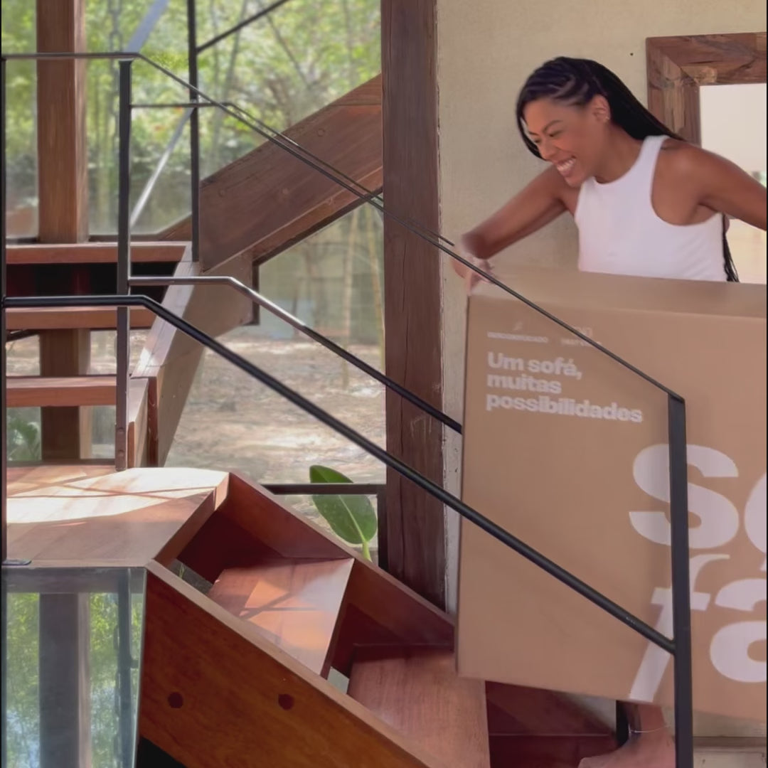 É um modelo de sofá projetado para ser entregue em embalagens compactas, facilitando o transporte e a entrada em apartamentos ou ambientes com pouco espaço. A montagem é simples e pode ser feita sem ferramentas.