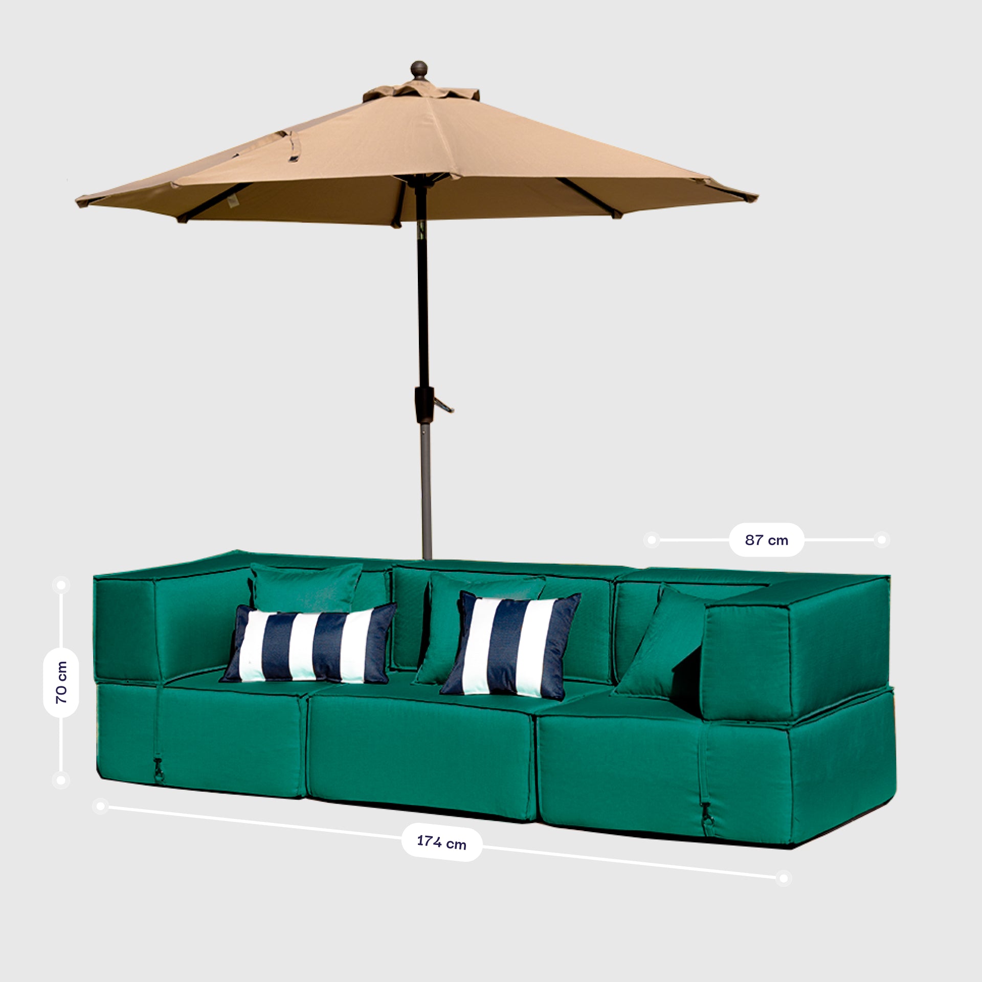 Ele conta com a tecnologia Sunproof®, que garante resistência a manchas causadas por água, vinhos, sucos e outras substâncias. Com este sistema modular e a proteção Sunproof®, você tem total liberdade para personalizar o seu espaço, garantindo conforto, estilo e durabilidade em qualquer configuração.
