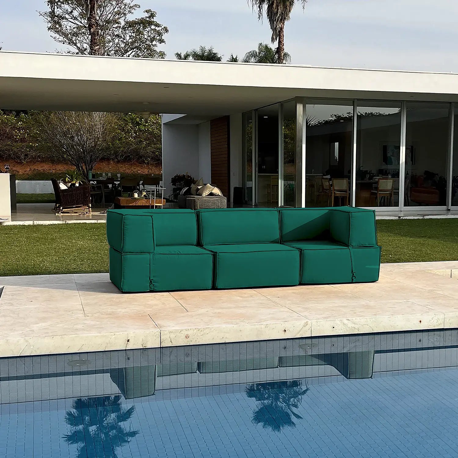 Cada módulo se encaixa perfeitamente, permitindo que você crie o sofá ideal para atender suas necessidades e gosto. Um sofá amplo qualquer tipo de área externa, as possibilidades são infinitas. Com este sistema modular, você tem total liberdade para personalizar o seu espaço, garantindo conforto e estilo em qualquer configuração
