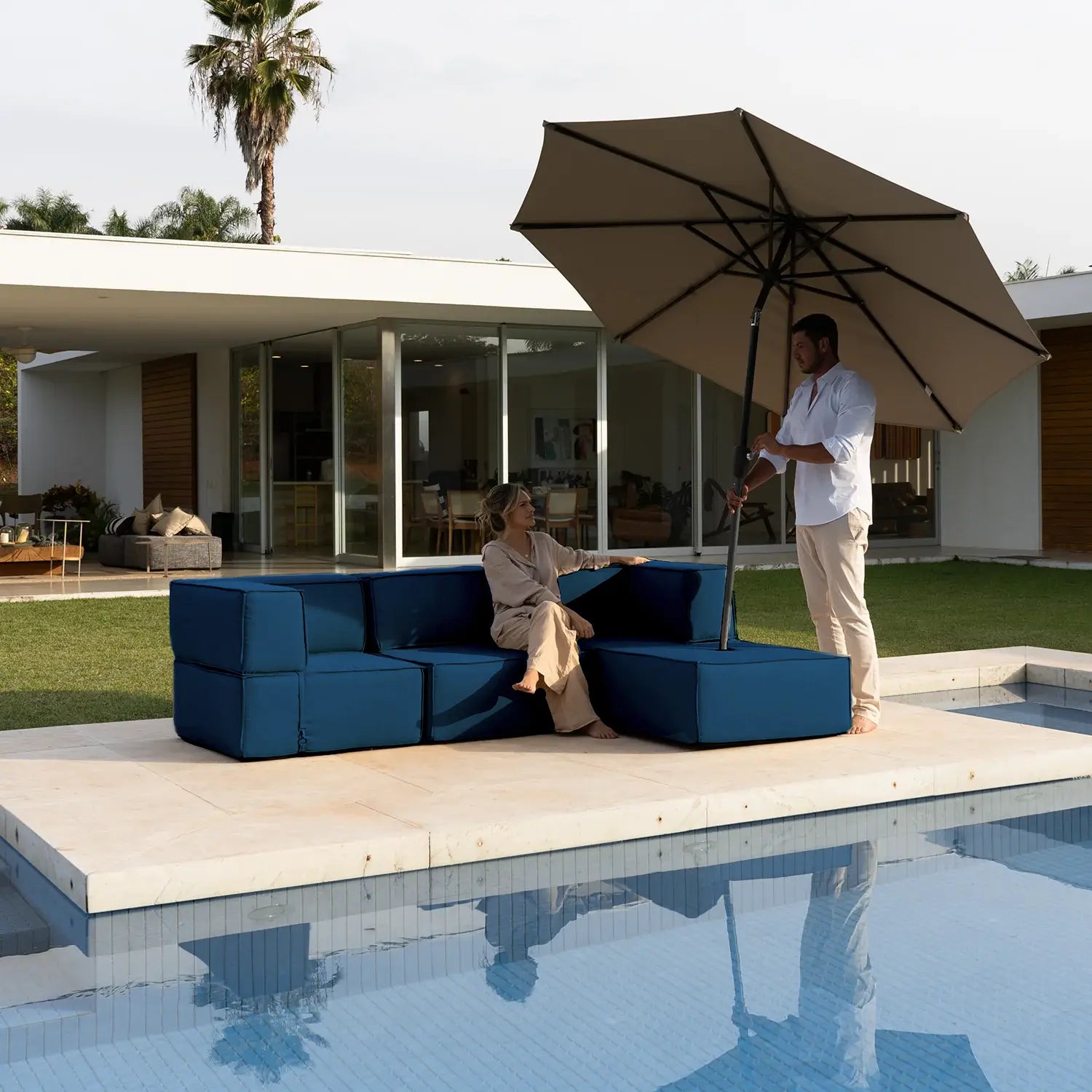 Cada módulo se encaixa perfeitamente, permitindo que você crie o sofá ideal para atender suas necessidades e gosto. Um sofá amplo qualquer tipo de área externa, as possibilidades são infinitas. Com este sistema modular, você tem total liberdade para personalizar o seu espaço, garantindo conforto e estilo em qualquer configuração