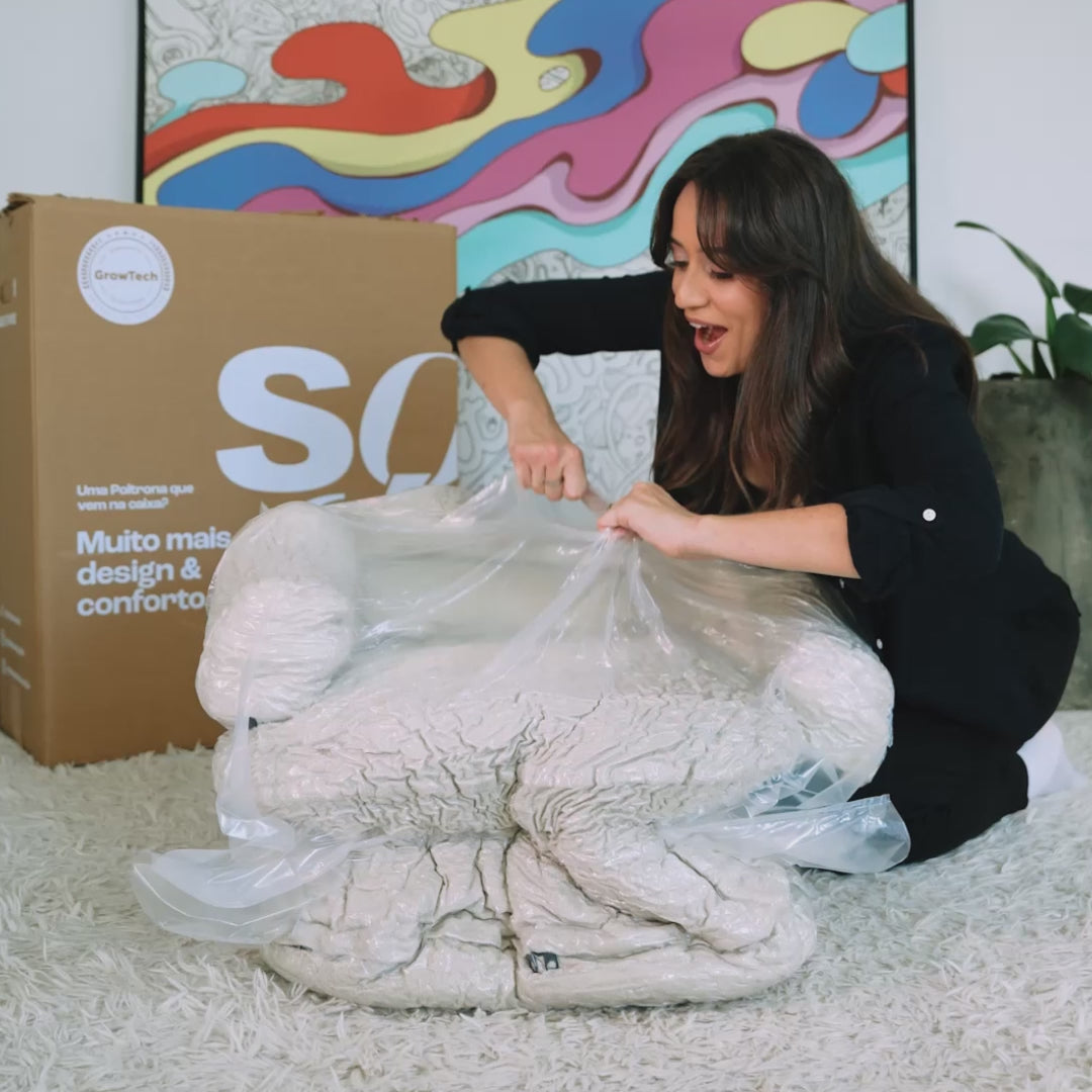 Com a GrowTech®, agora é possível comprar um sofá em uma caixa compacta. Essa tecnologia única é o resultado de anos de pesquisa e desenvolvimento, tornando a experiência de compra de um sofá simples e surpreendente.