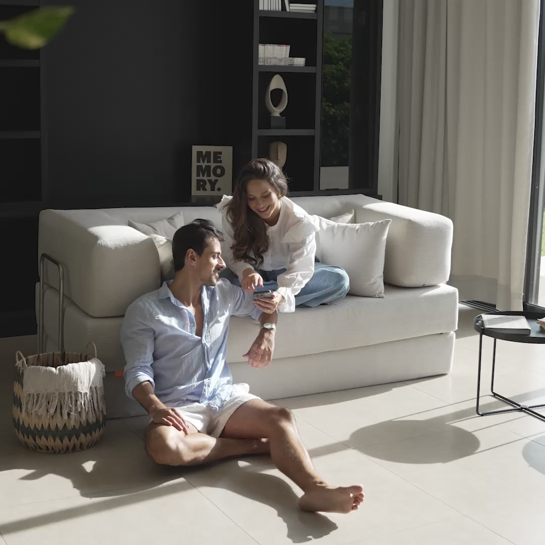 É um modelo de sofá projetado para ser entregue em embalagens compactas, facilitando o transporte e a entrada em apartamentos ou ambientes com pouco espaço. A montagem é simples e pode ser feita sem ferramentas.
