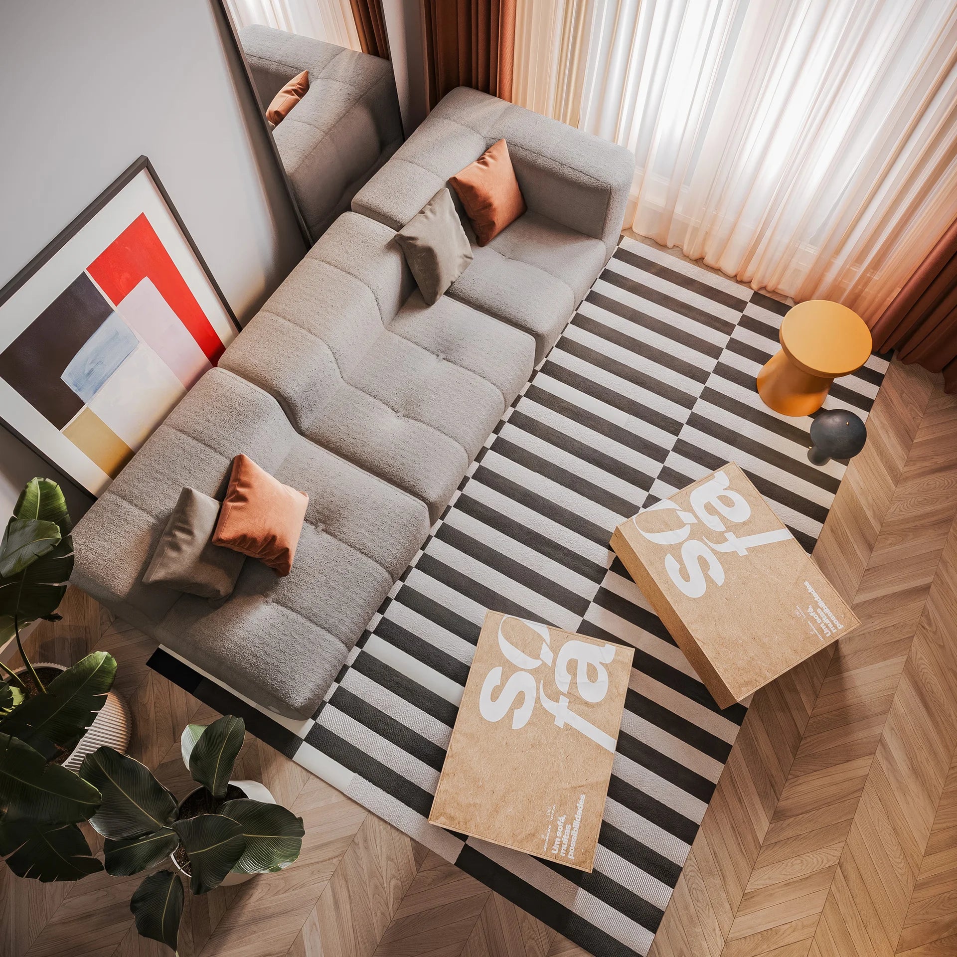 Muitas possibilidades de design em um único sofá. Misture e combine facilmente esses módulos leves de acordo com sua preferência. Desde um clássico sofá de canto até uma disposição aleatória na sala.