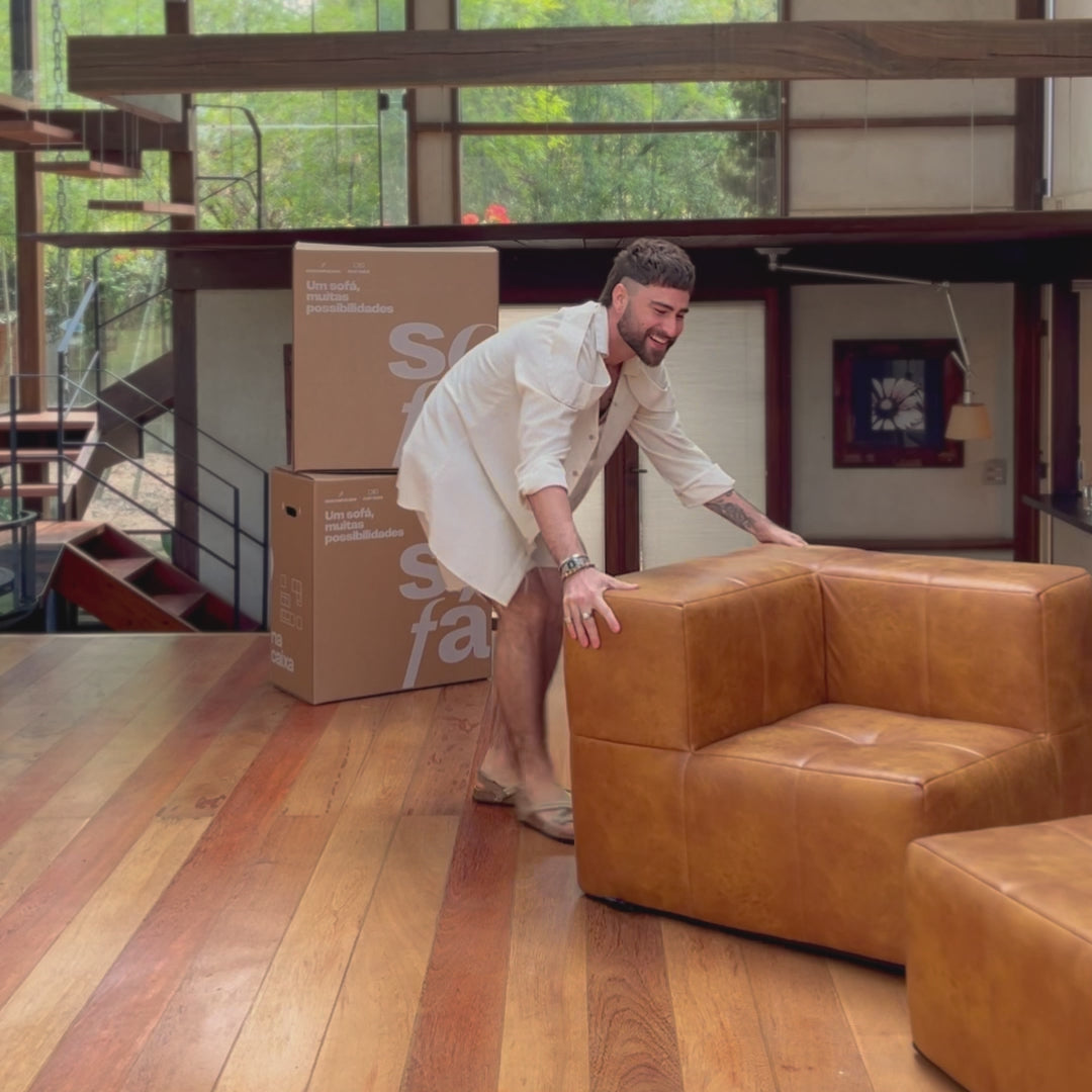 Nosso SOFÁ NA CAIXA, graças à inovadora tecnologia GrowTech, aguenta de 130 a 150kg por módulo, mantendo a forma sem precisar de madeira ou alumínio. Isso significa conforto máximo garantido!